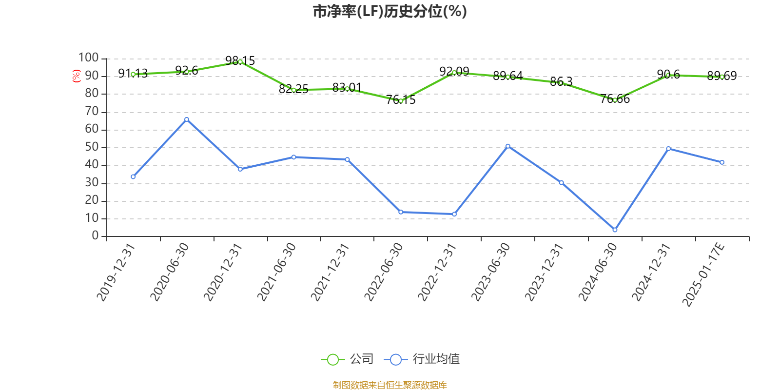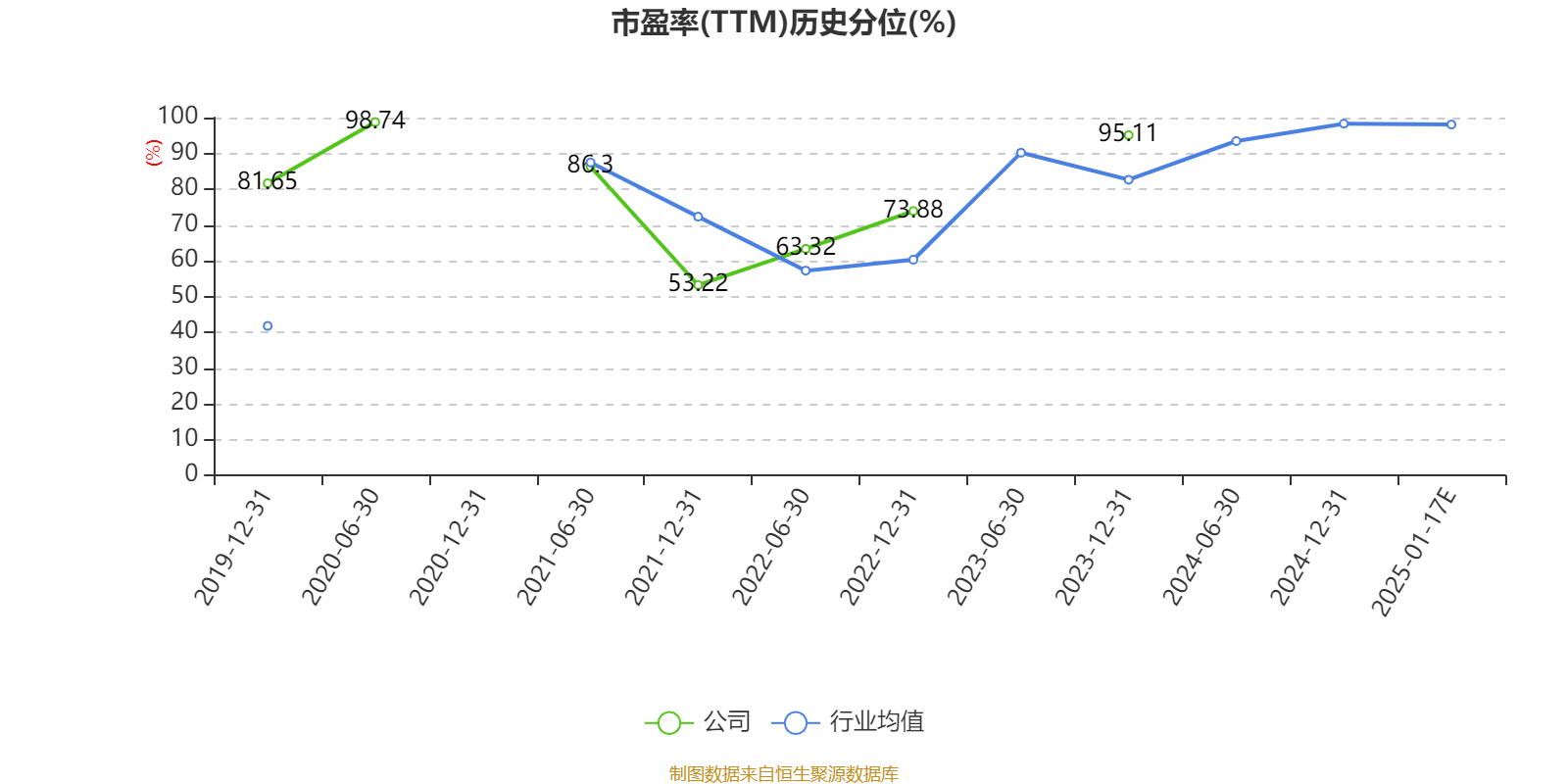 市盈率、市净率为负时,不显示当期分位数,会导致折线图中断。